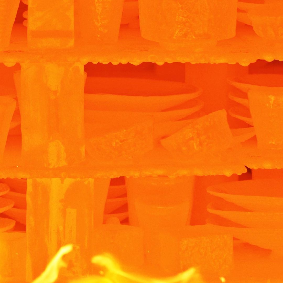 如果坯體或釉料內(nèi),再或者燃料內(nèi)的硫元素被氧化并揮發(fā)出氣體,那么該氣體與測(cè)溫錐中的硅酸鹽結(jié)合后會(huì)令測(cè)溫錐的耐熱性能更高,在這種情況下,即便是窯內(nèi)燒成溫度早已超過坯釉熔融溫度,釉料流到硼板上,測(cè)溫錐依然不會(huì)彎曲!除此之外,如果過早采取還原燒成,碳元素會(huì)沉積并堵塞住測(cè)溫錐外表面上孔洞,進(jìn)而導(dǎo)致測(cè)溫錐無法在其熔點(diǎn)下彎曲。